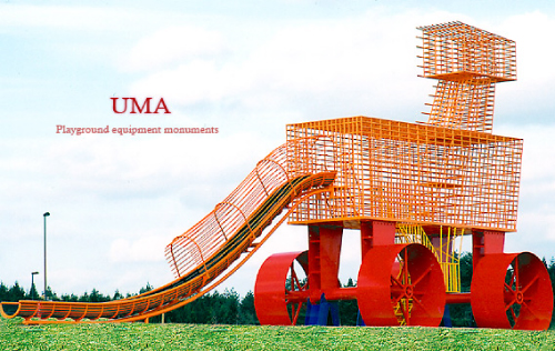 ◆◇ UMA ◇◆ 地面から頭頂部までの高さが約8.7メートルのUMA(ユーマ)は、すべり台とジャングルジムが一緒になった遊具です。 すべり台の角度が急なので、見た目より迫力がありますよ!