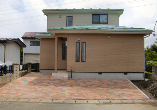 アスファルトを敷くのも一つですが、インターロッキングで色鮮やかにしてみては?